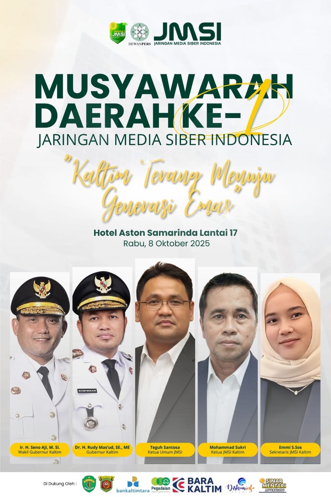SELAJUR.COM, SAMARINDA – Jaringan Media Siber Indonesia (JMSI) Kalimantan Timur (Kaltim) segera mencatat sejarah organisasi dengan menggelar Musyawarah Daerah (Musda) pertamanya pada Rabu (8/10/2025) pagi.